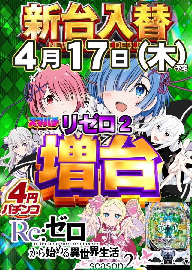 明日スマパチRe:ゼロ増台(予定)