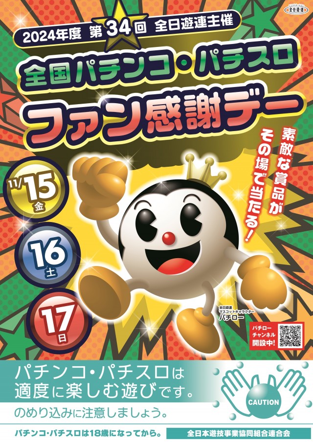 明日から3日間全国パチンコ・パチスロファン感謝デー予定‼