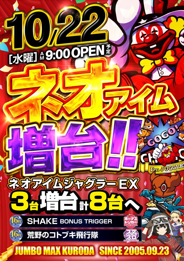 ✨ネオアイムジャグラー増台🤡✨SHAKE&コトブキも新登場❗