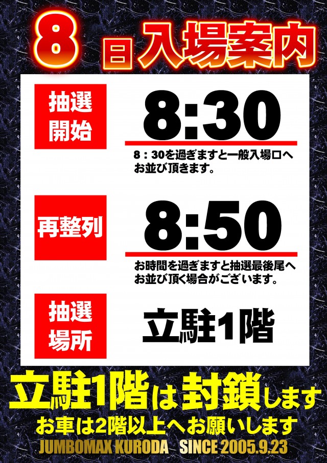 明日の入場抽選は8:30です!!ご来店お待ちしております!