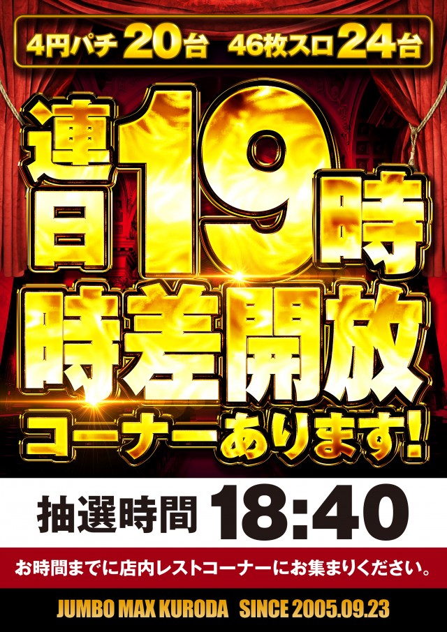 連日19時時差開放コーナーあります✨抽選は18時40分❗