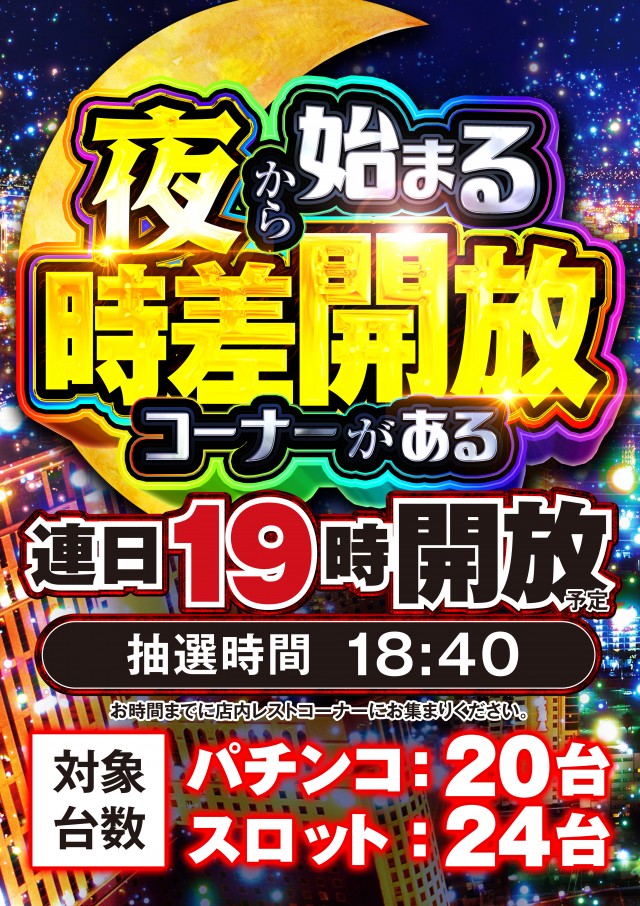 今日も19時時差開放❗対象機種はこちら✨抽選は18時40分😆