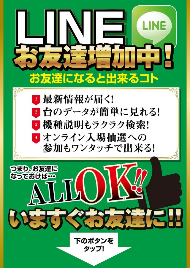4円パチンコ:204台 1円パチンコ:72台 20円スロット:243台 5円スロット:26台 |