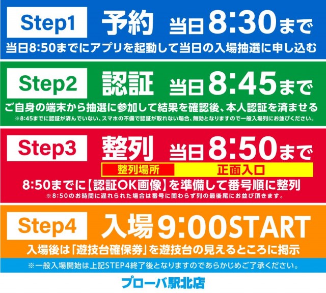別途アプリにて毎日抽選!事前にアプリをダウンロード後、予約をお願い致します。①8:30 抽選予約締切 ②8:45 認証締切 ③8:50 再整列 |