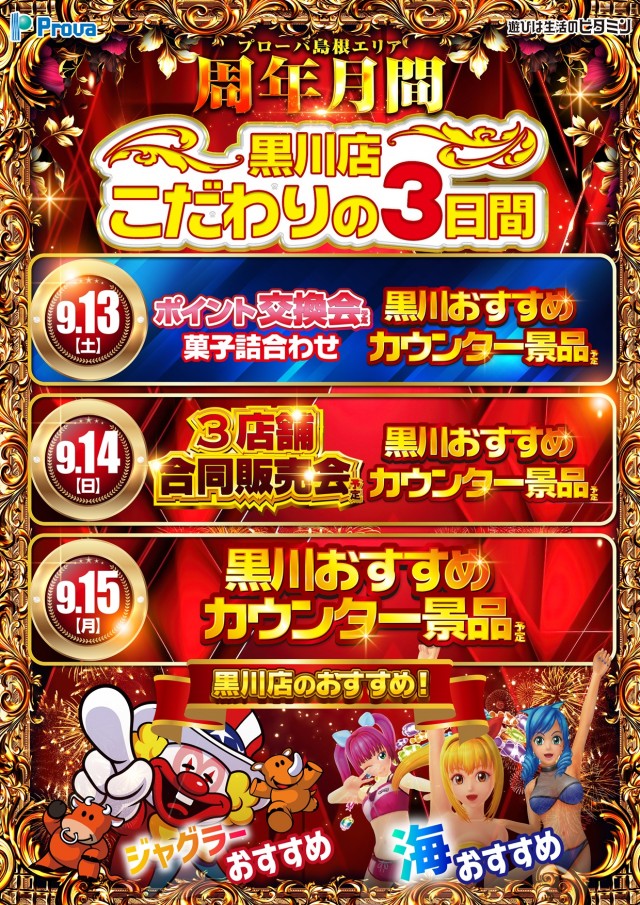【周年月間】本日も9時オープン!~黒川店こだわりの3日間~