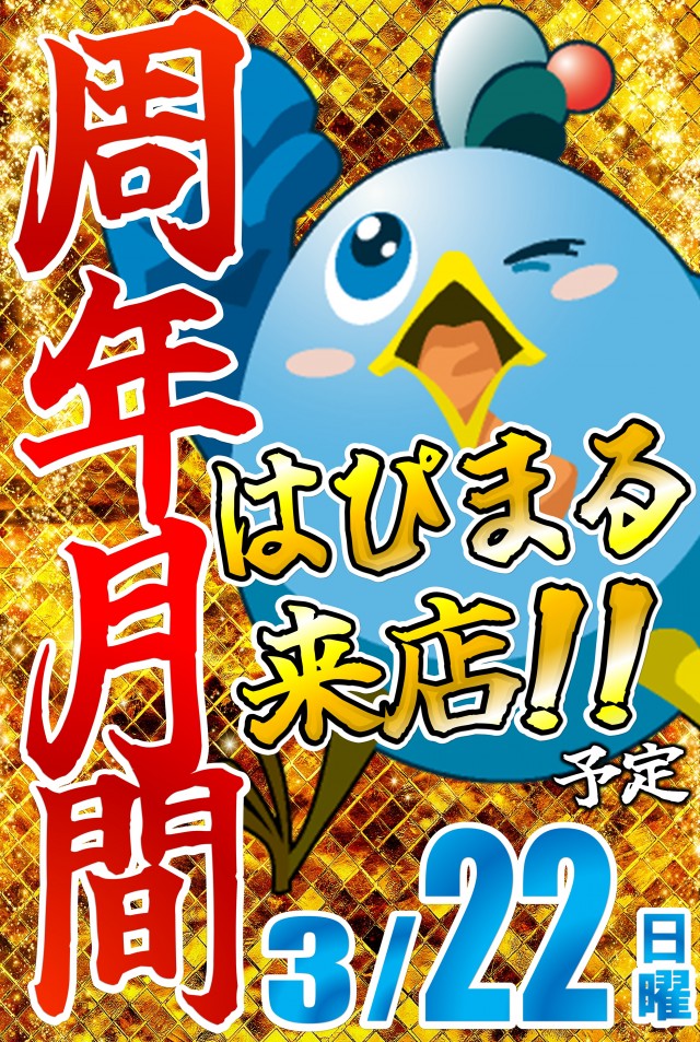 ✨周年月間✨本日‼️はぴまる来店‼️抽選は8時40分予定‼️