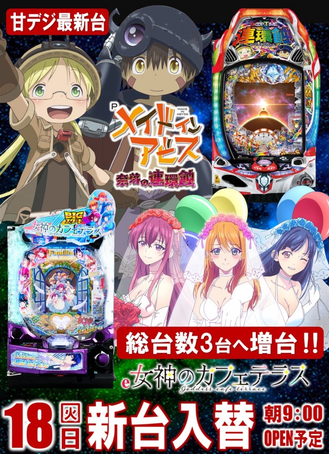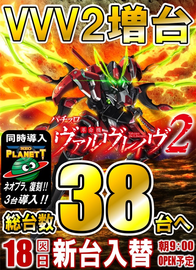明日は新台開店‼️VVV2増台‼️総台数38台へ‼️