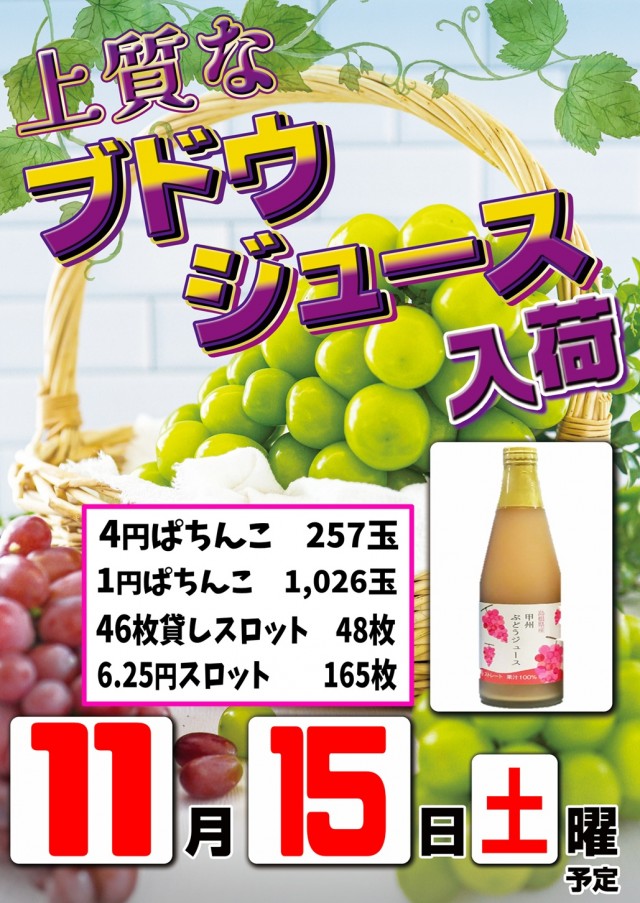 本日はジャグラーカード&ぶどうジュース入荷予定‼️