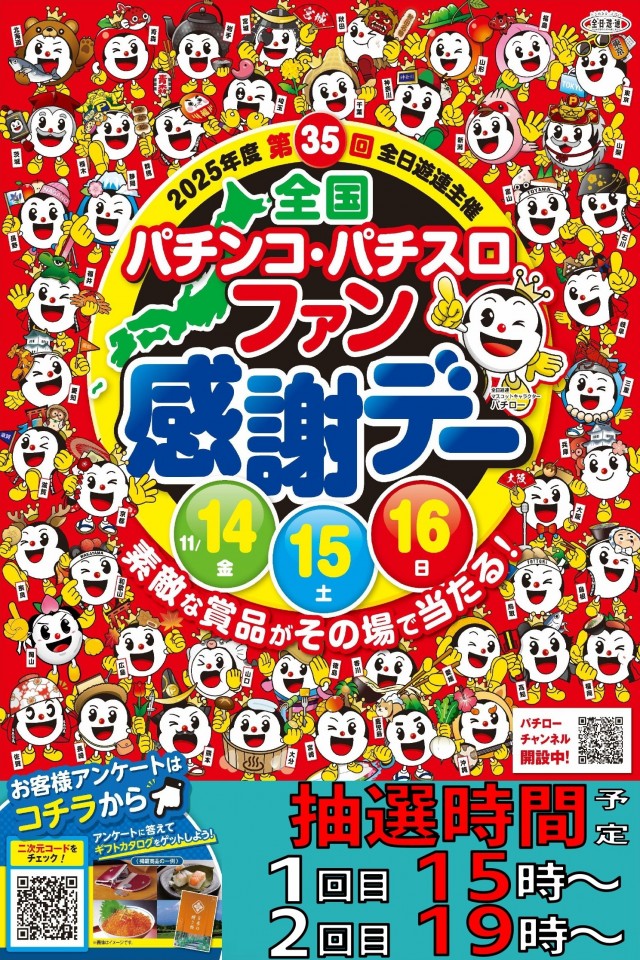 本日より3日間‼️全国パチンコ・パチスロファン感謝デー‼️予定