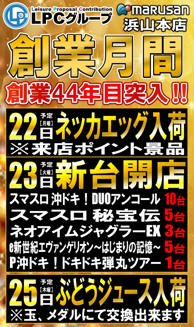 【創業月間】本日は新台開店‼️最新台が続々導入‼️予定