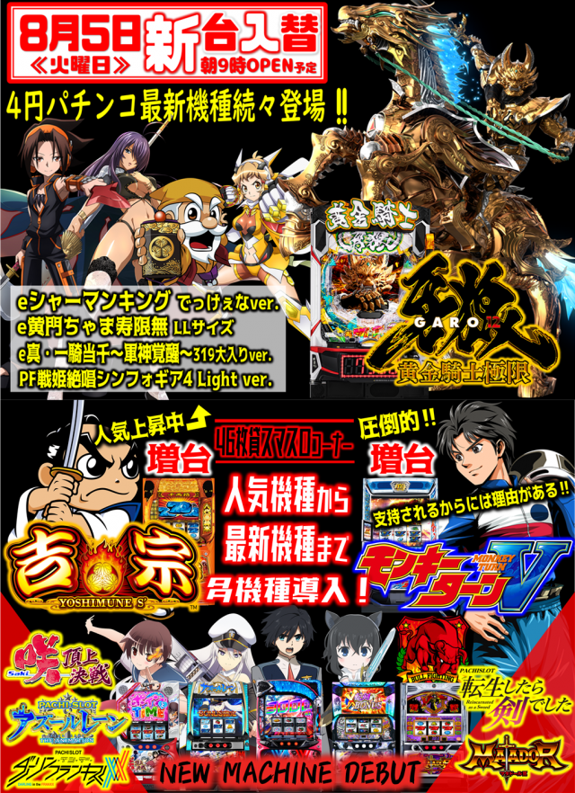 2025/08/058月5日(火)最新台続々導入‼️モンキーは更に増台‼️予定