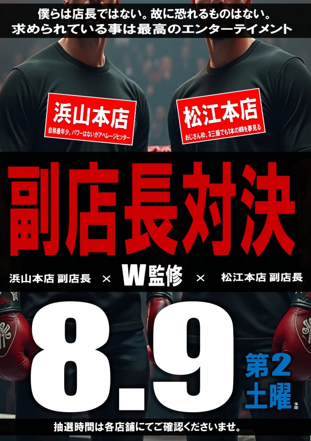 2025/08/09本日は浜山本店×松江本店の副店長対決‼️予定