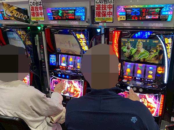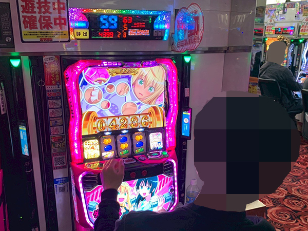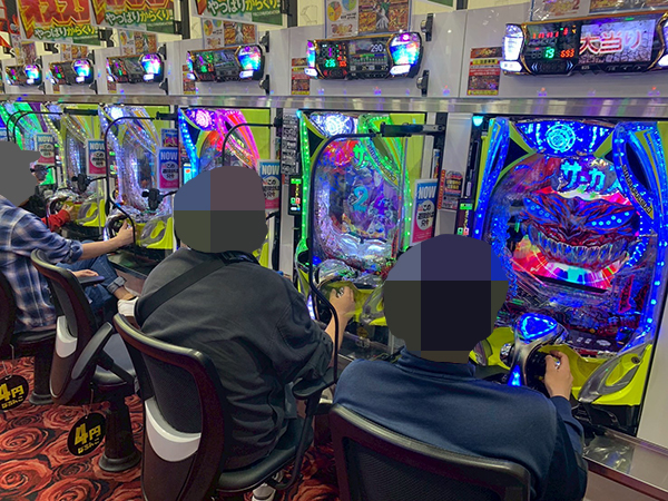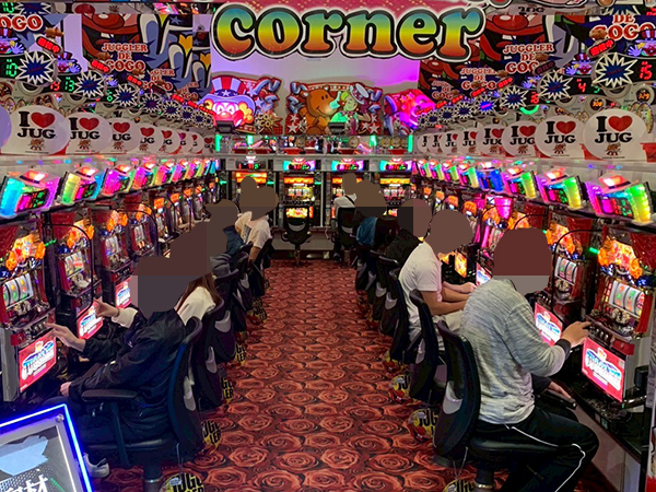 1000円/160枚パチスロの稼働も高い。楽しそうにレバーを叩くプレイヤーの姿を複数目撃している。