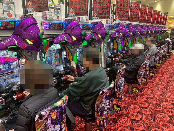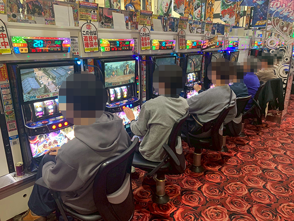 取材時は既に多くのプレイヤーであふれており、パチンコ・パチスロを問わず楽しげな表情でいっぱいだった。