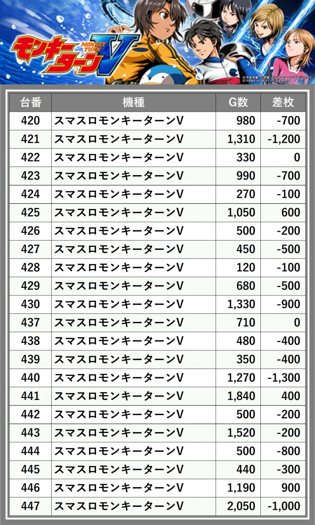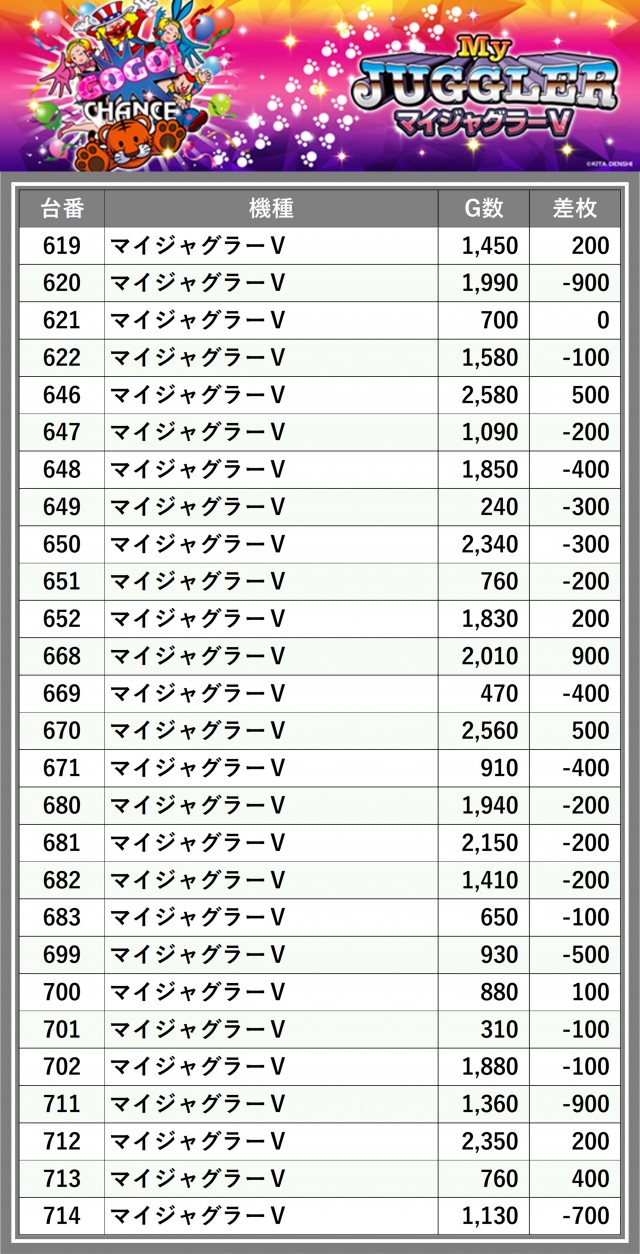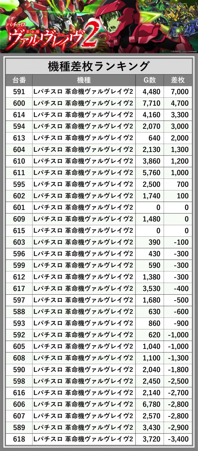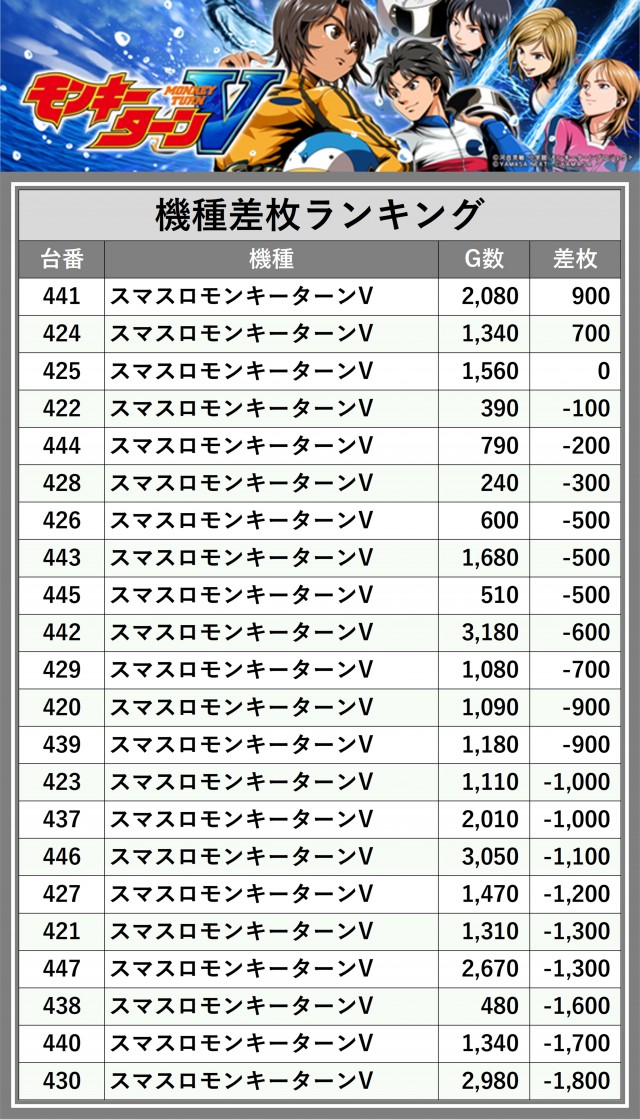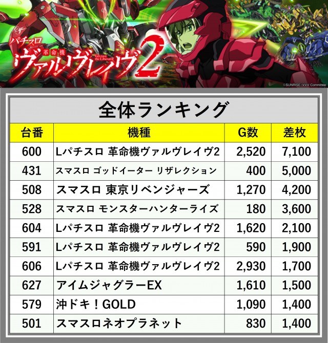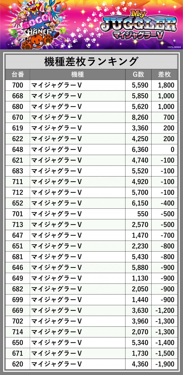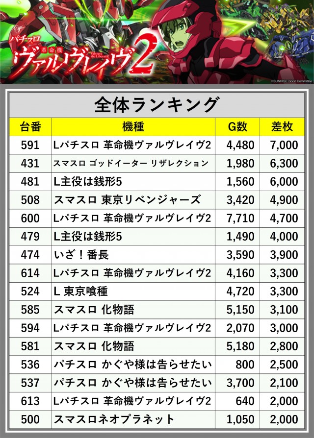 ※差枚数順に掲載しています