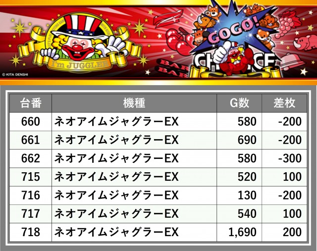 厳選された取材対象機種をはじめ、その他スロット全体から好記録が飛び出した!プレイヤーが楽しんだ1日を下記データにて振り返ってみて欲しい。