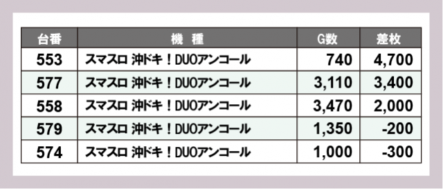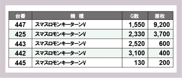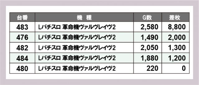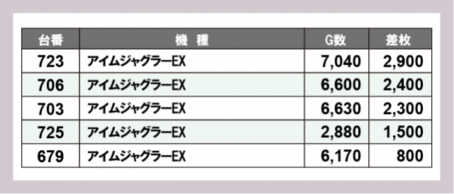 ※差枚数順に掲載しています