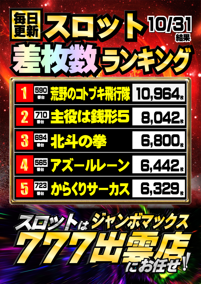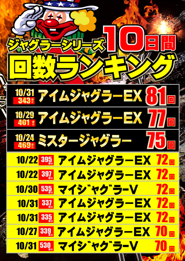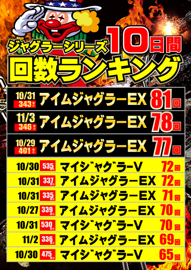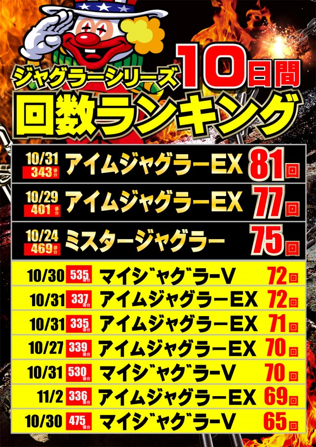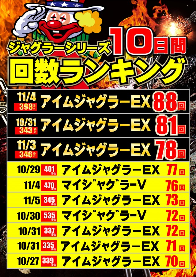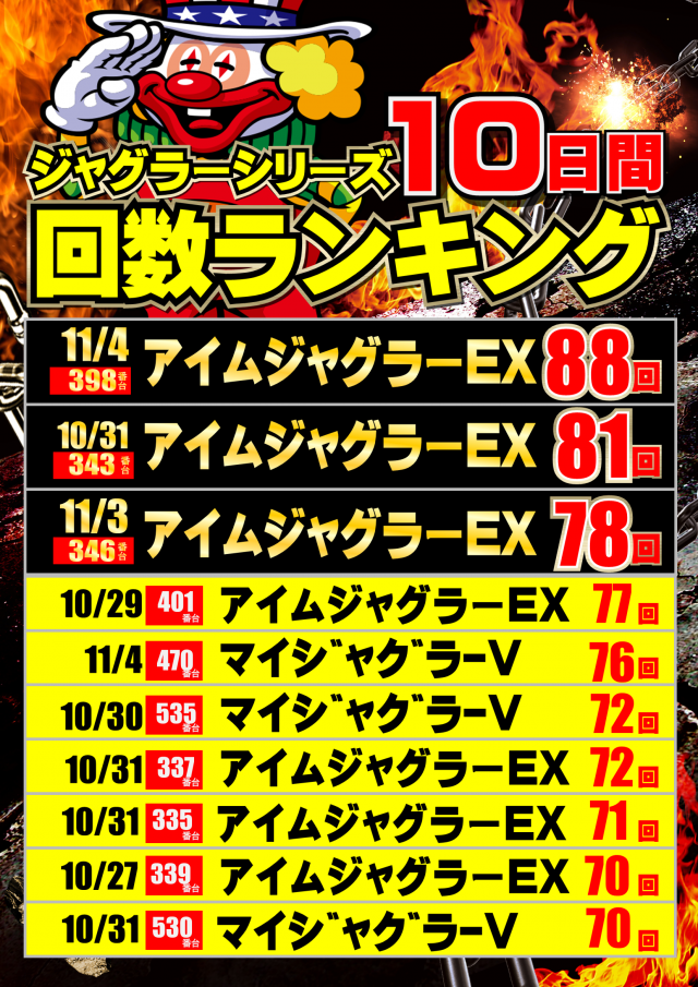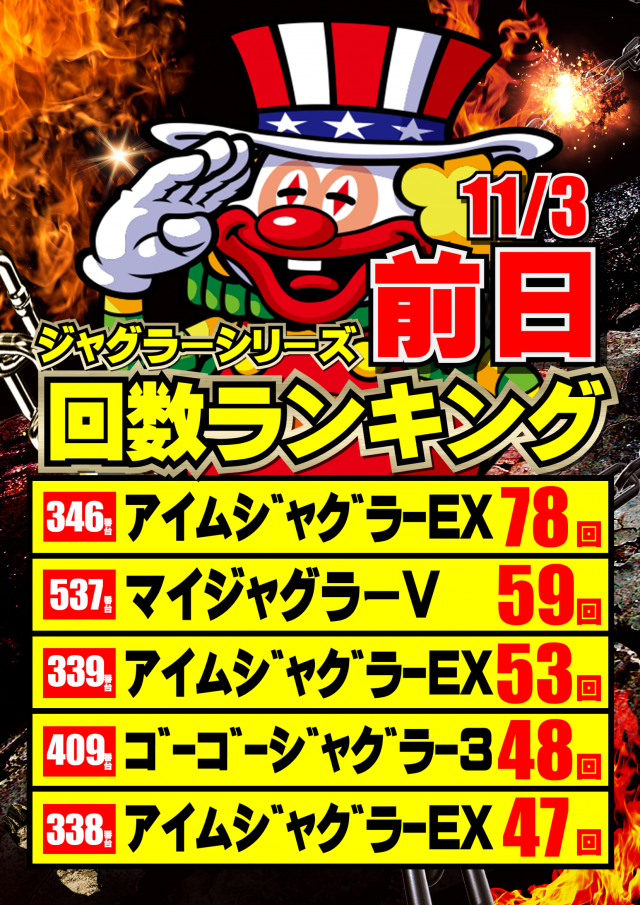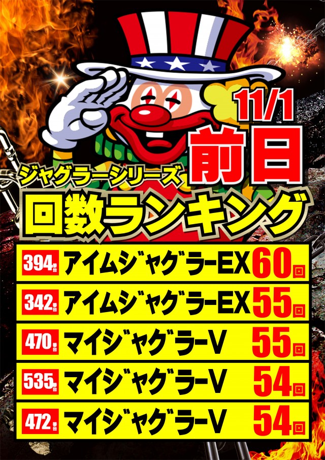 1位 11月4日(火) 2位 11月5日(水) 3位 10月10日(金)
