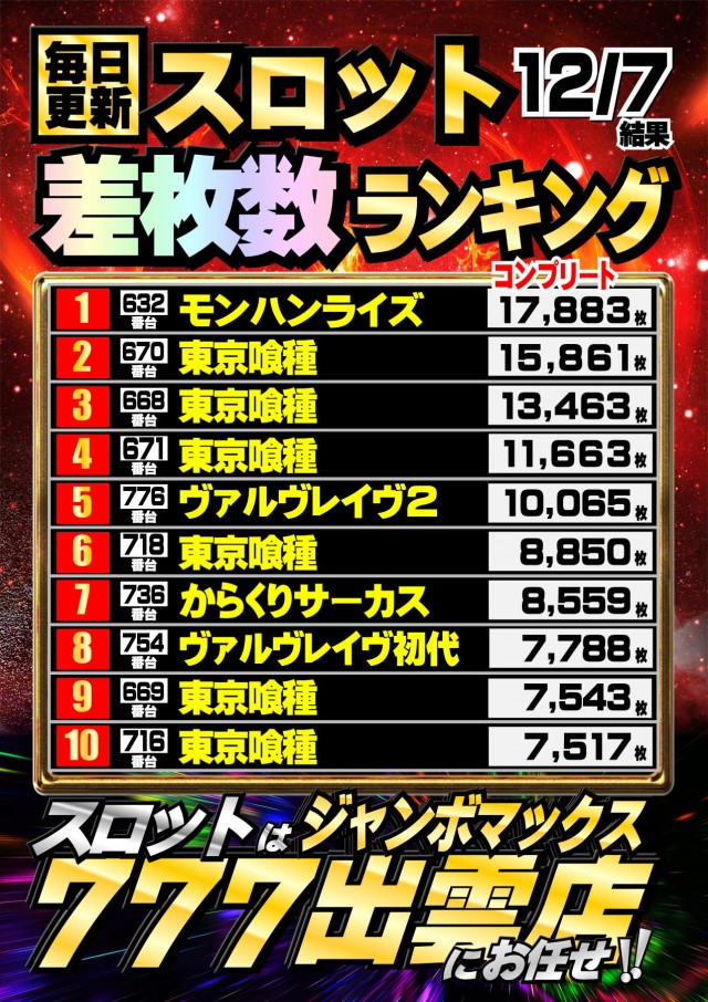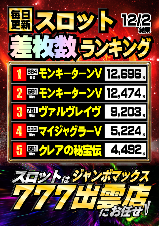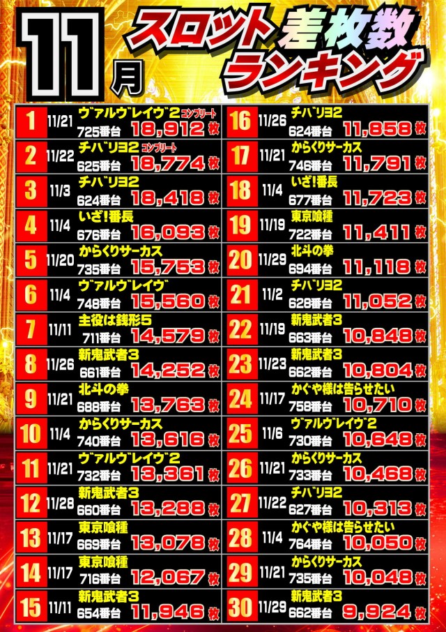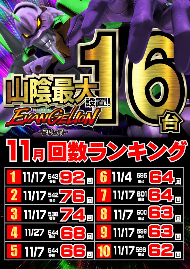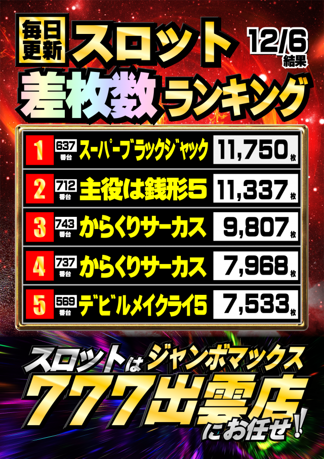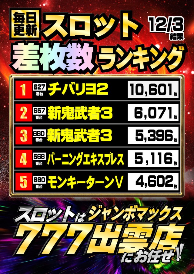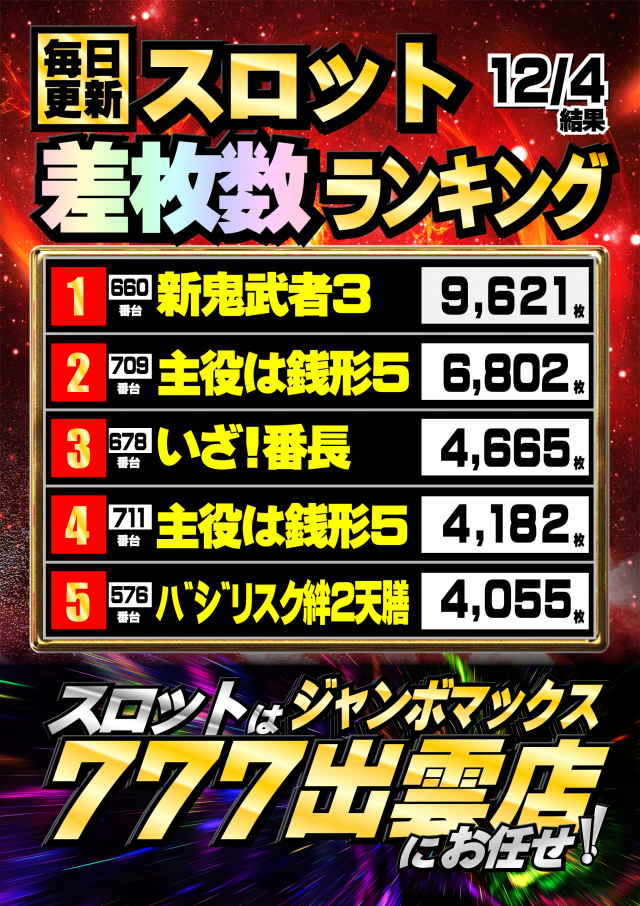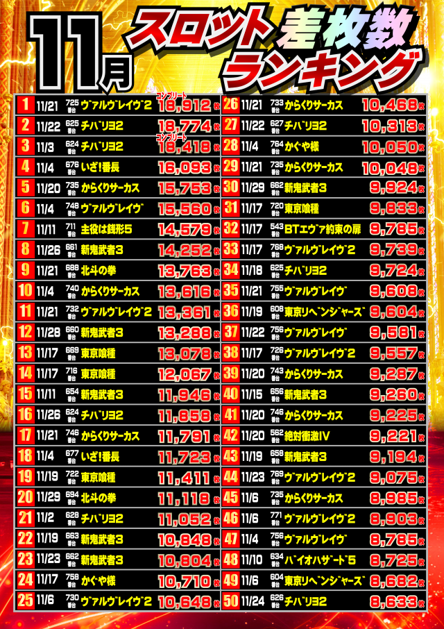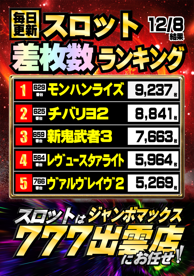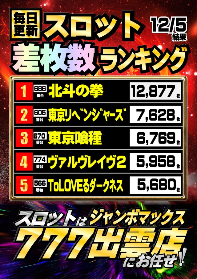 ランキング更新😁5スロ‼️東リベ5台へ😆&1パチに新機種登場‼️