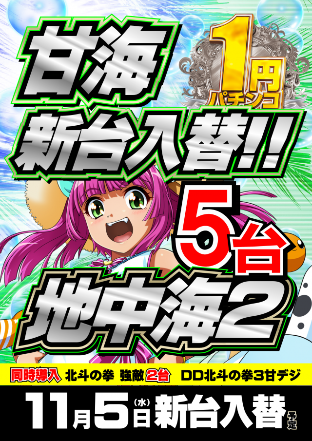 VVV2導入第一弾‼️20台導入予定‼️5スロ鬼武者3台稼動中‼️