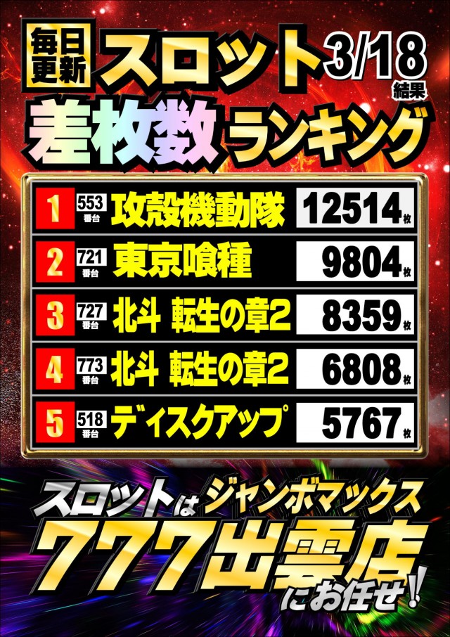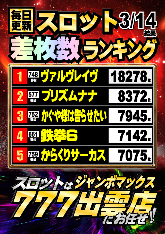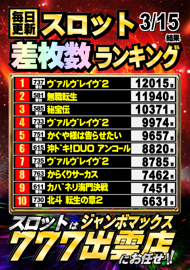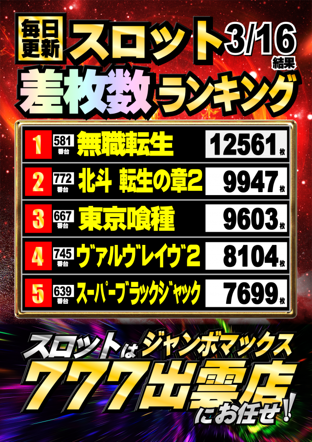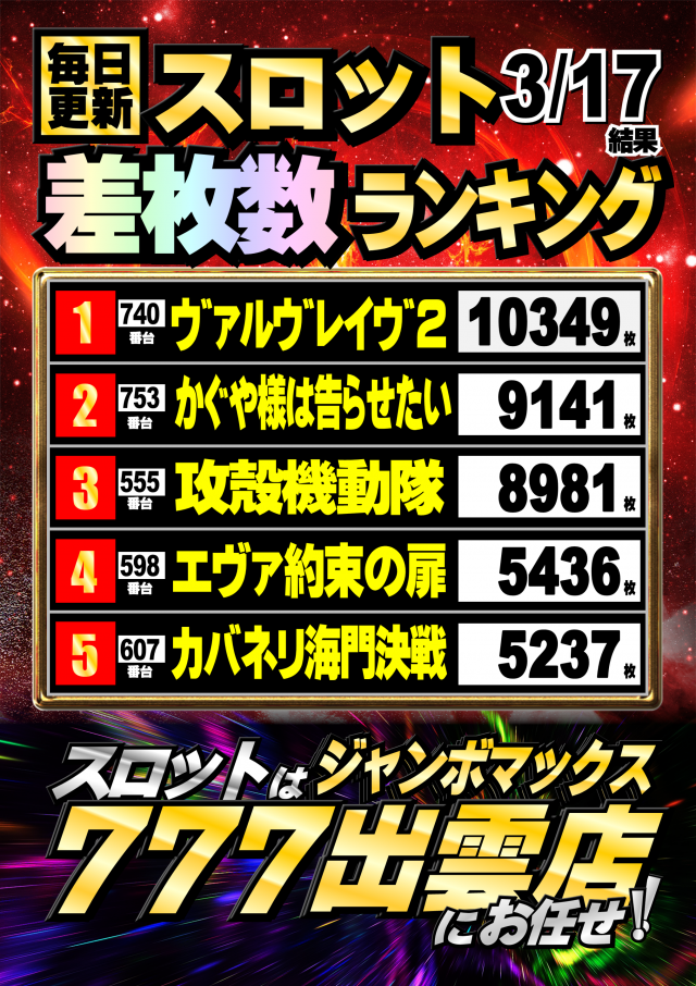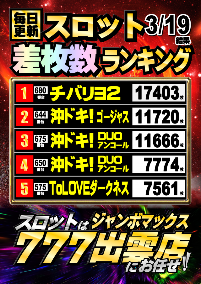 ジャンボマックス777出雲店のお知らせ一覧