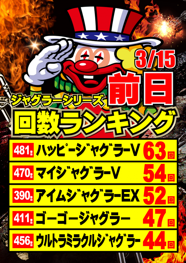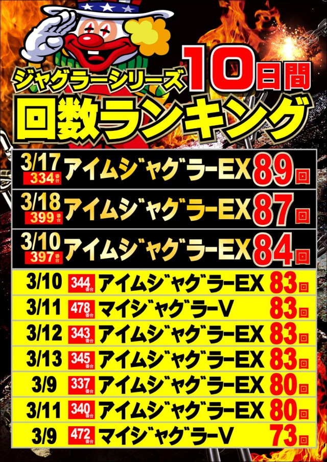 ジャグラーランキングにご注目😆‼️ご来店お待ちしてます‼️