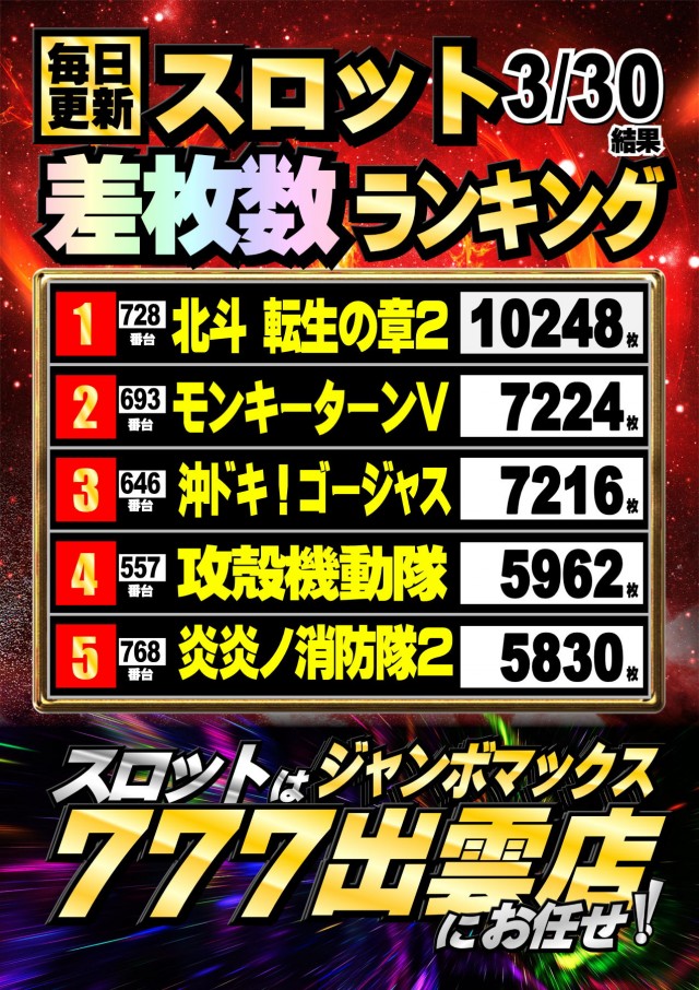 ジャンボマックス777出雲店のお知らせ一覧