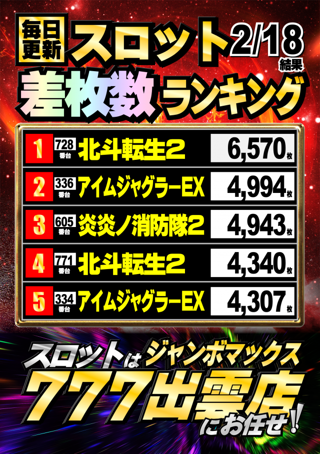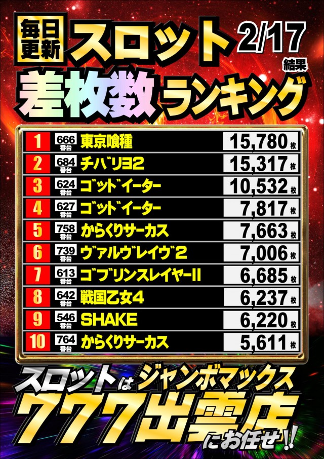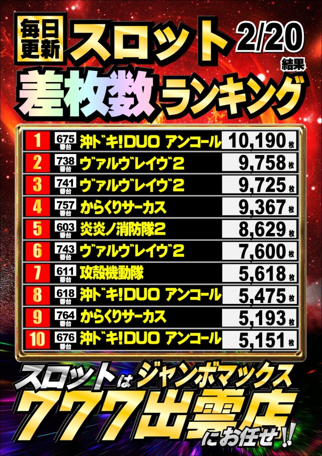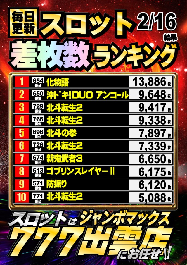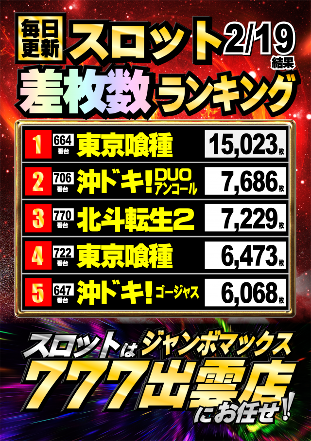 ジャンボマックス777出雲店のお知らせ一覧