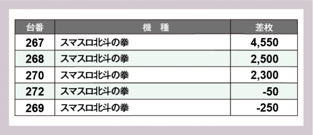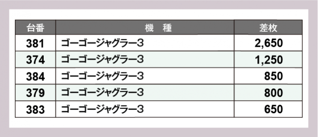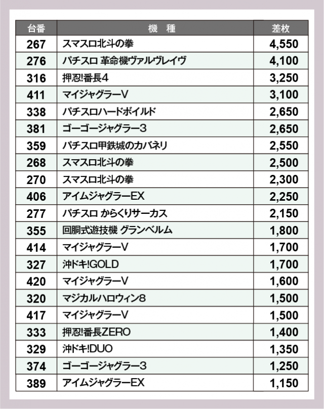 ※差枚数順に掲載しています