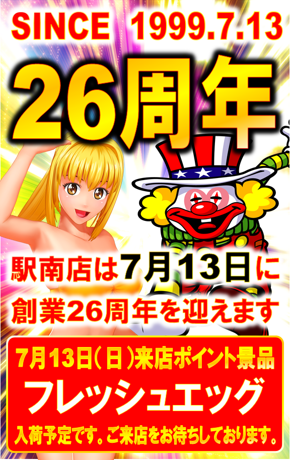 明日は周年日‼ 皆様のご来店お待ちしております♪