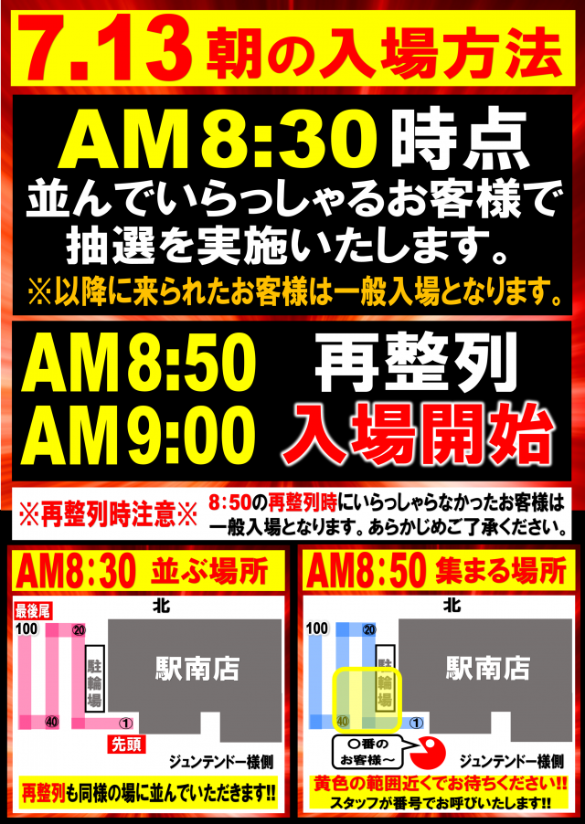 「2名以上の並びで8:30~入場順番抽選実施」 |
