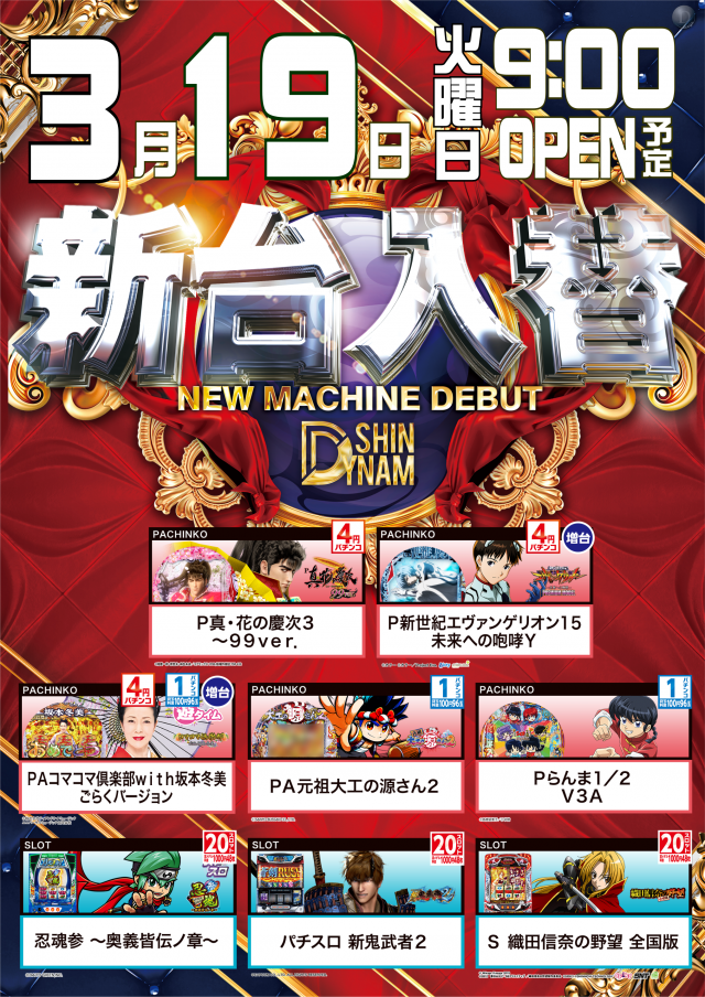 本日3/19(火)新台入替(予定)