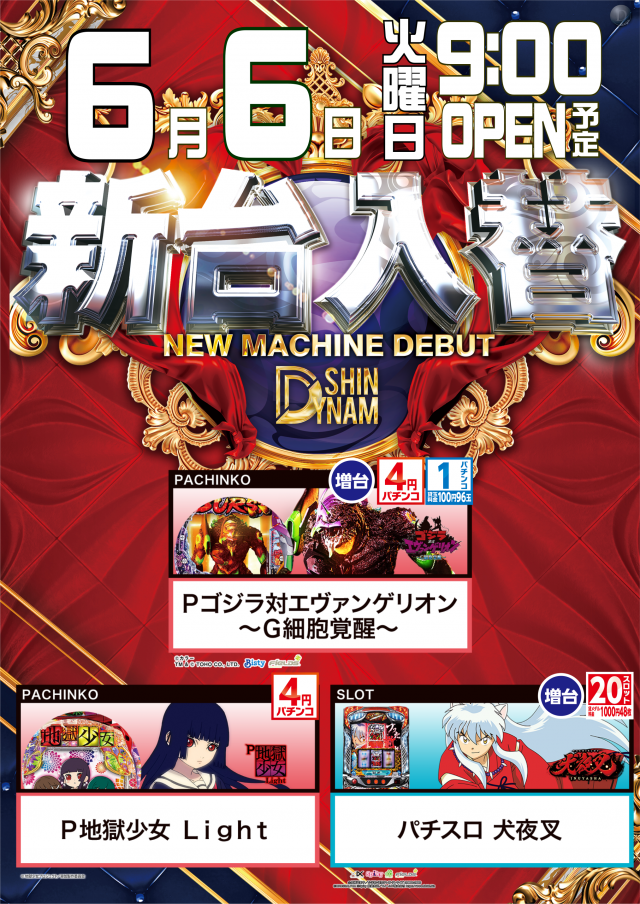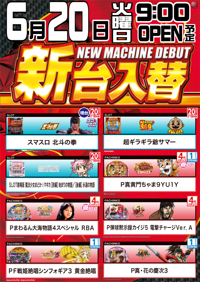 本日6/6(火)新台入替(予定)