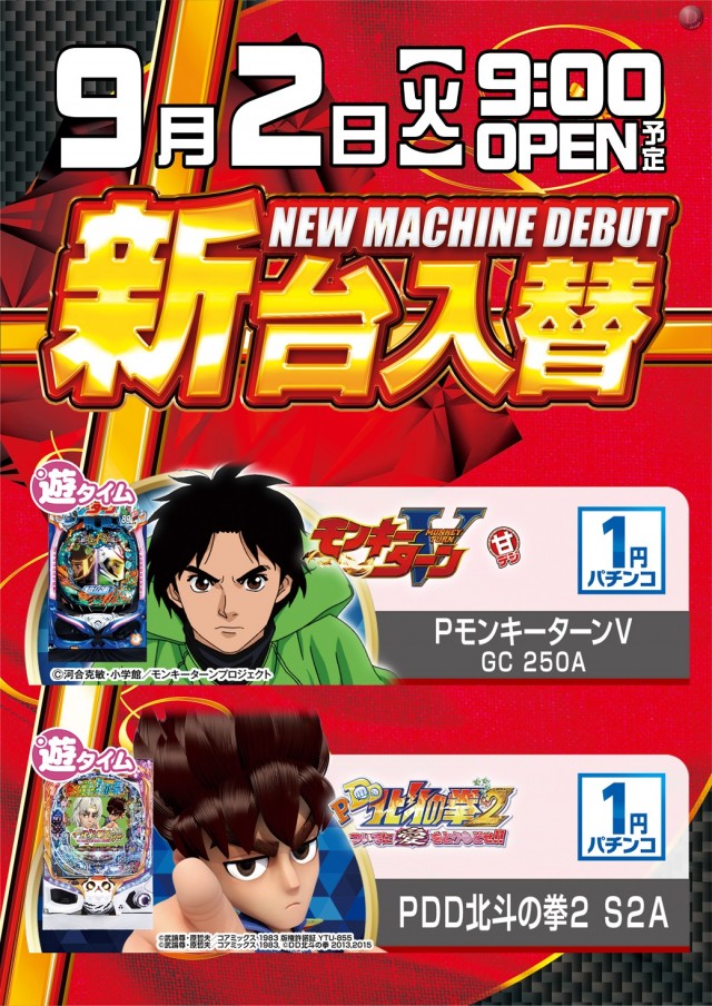 明日9/2(火)新台入替(予定)