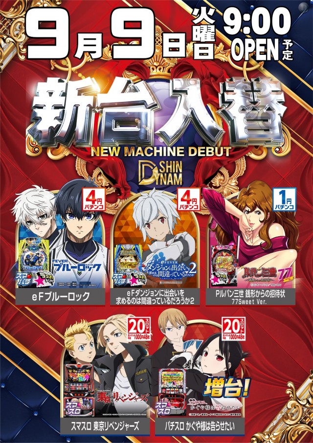 明日9/9(火)新台入替(予定)
