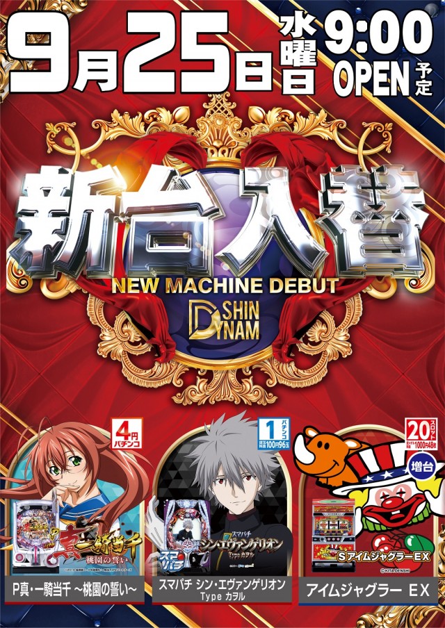 本日9/25(水)新台入替(予定)