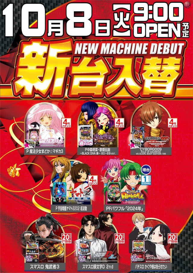 本日10/8(火)新台入替(予定)
