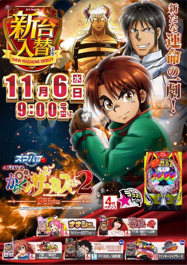 本日11/6(水)新台入替(予定)