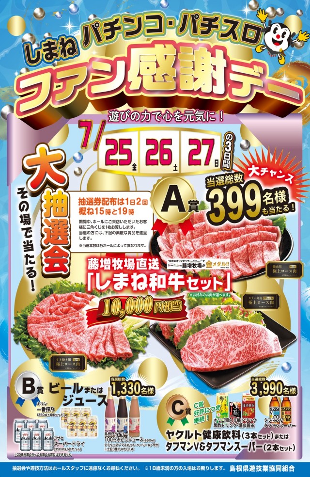本日より3日間しまねパチンコ・パチスロファン感謝デー開催!