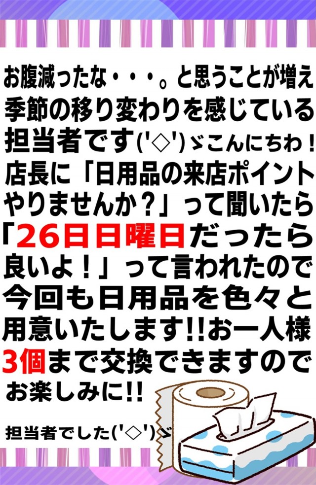 担当者厳選の日用品を大量に!来店ポイントで入荷予定!