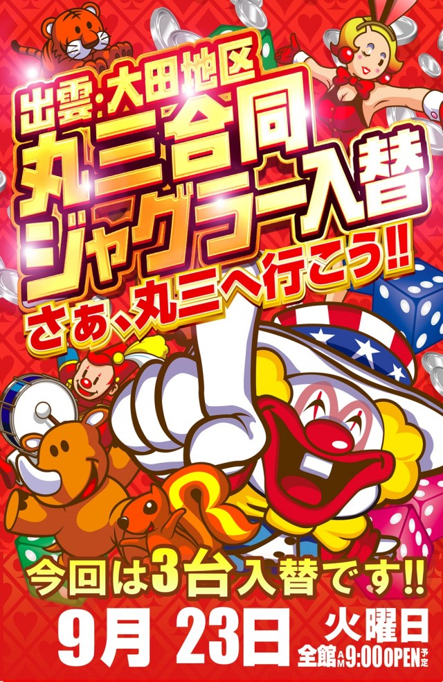 本日出雲・大田エリア合同ジャグラー新台開店‼