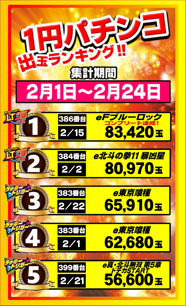 1位 2月25日(水) 2位 2月19日(木) 3位 2月20日(金)