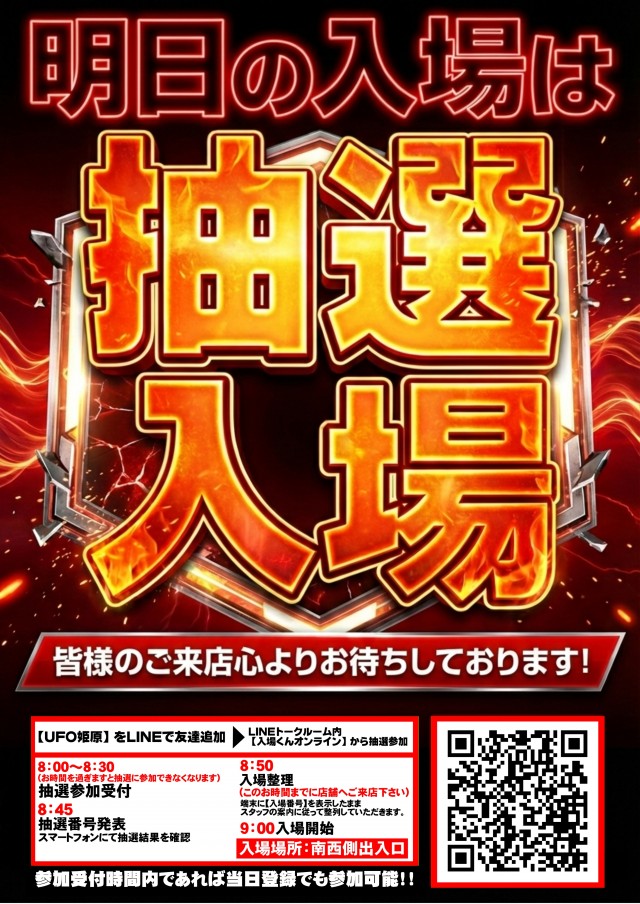 本日【★最新台★登場!!】~朝は入場順抽選~