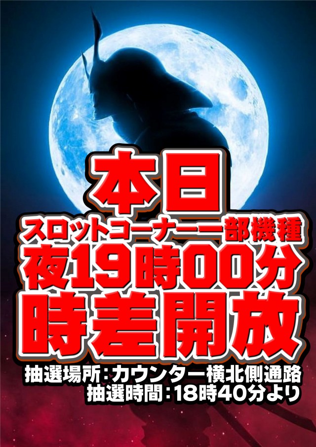 このあと【19時頃】スロット一部機種 ★時差開放★予定!