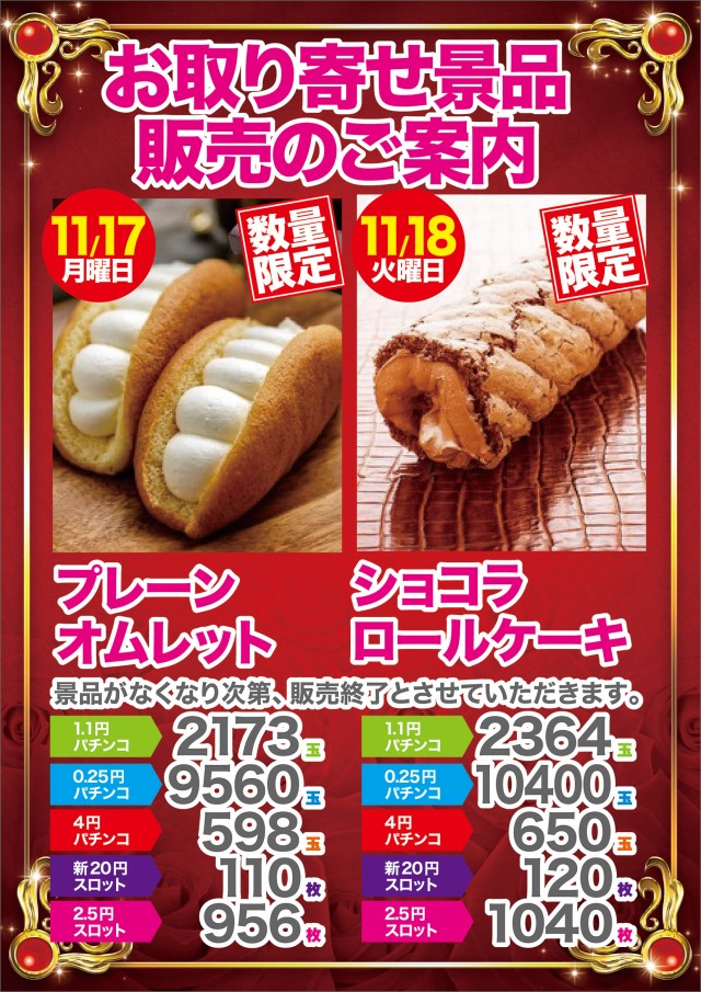 1位 11月22日(土) 2位 11月24日(月) 3位 11月8日(土)