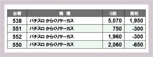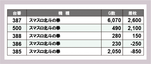 ※差枚数順に掲載しています