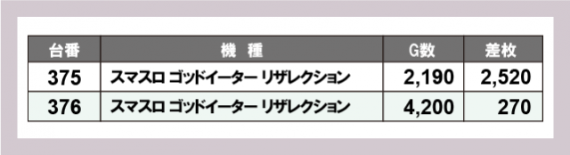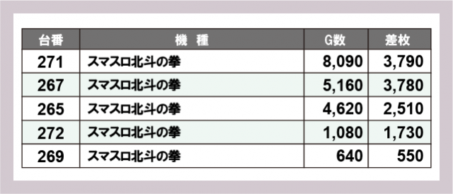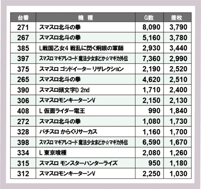 ※差枚数順に掲載しています