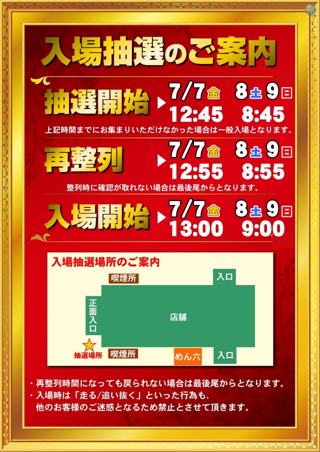 9:00 ~ 23:00 (遊技終了22:45) |