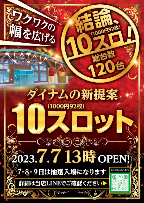 7/7(金)新台入替予定&10スロ(1000円92枚)新登場