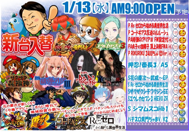 「丸三益田店」:本日新台開店予定!